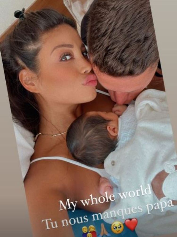 Die Französin teilte ein Foto der kleinen Familie in ihrer Story. Auf dem Bild küsst sie Draxler auf die Stirn. Der 29-Jährige wiederum küsst auf dem Bild die Hand des kleinen Jungen, der auf der Brust der Mama liegt.