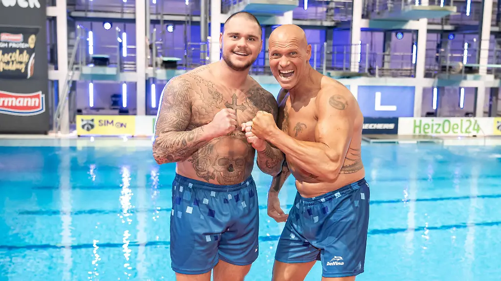 In zwei Disziplinen (Einzel, Synchronspringen) und jeweils drei Durchläufen - inklusive Finale - wagen sich die nicht immer ganz schwindelfreien Kandidaten auf die Sprungturmanlage von Deutschlands größter Schwimmhalle im Europasportpark Berlin. "Das ist für mich hier oben die Hölle", jammert Moderatorin Laura Wontorra auf dem Zehnmeterturm stehend. Ja, so ein paar Zentimeter unter dem Hallendach kann einem schon die Düse gehen. Das sieht auch Ex-Kunstturn-Champ Philipp Boy so: "Ich scheiß mir hier oben ein!", bibbert der Sieger der ersten Format-Ausgabe (2022).