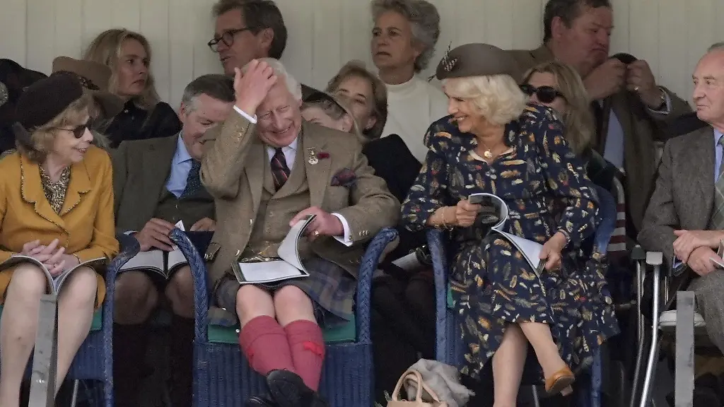 König Charles III. hat sich bei berühmten Highland Games "Braemar Gathering" in der schottischen Ortschaft Braemar, unweit der königlichen Sommerresidenz Balmoral, bestens amüsiert. In einem klassischen karierten Kilt und mit Hemd, Weste und Sakko bekleidet, war er zusammen mit seiner Ehefrau Königin Camilla in der ersten Reihe der traditionellen schottischen Veranstaltung zu sehen.