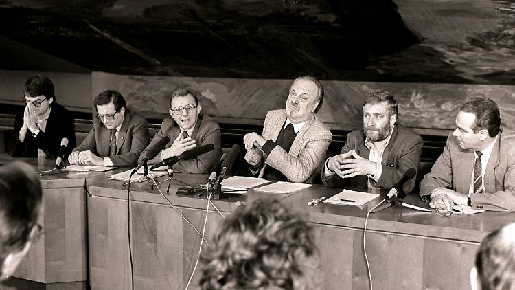 Masur (3.v.r.) als Teil der "Leipziger Sechs", die den Aufruf "Gegen Gewalt" verfassten.