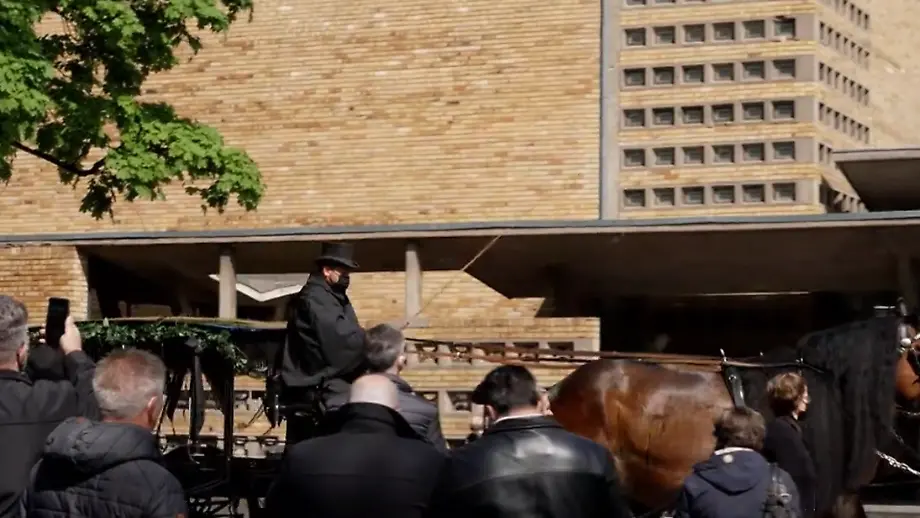 Live-Bilder von der Beerdigung zeigten, wie der schwarze Sarg des Entertainers umringt von Schaulustigen vor der Trauerhalle auf eine von zwei braunen Pferden gezogene Kutsche geladen wurde. Das Gefährt setzte sich daraufhin in Richtung der letzten Ruhestätte Willi Herrens auf dem Friedhof in Bewegung, gefolgt von der Trauergemeinde.
