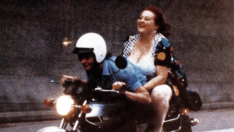Auf dem Motorrad mit Eisi Gulp: Marinna Sägebrecht in "Zuckerbaby".