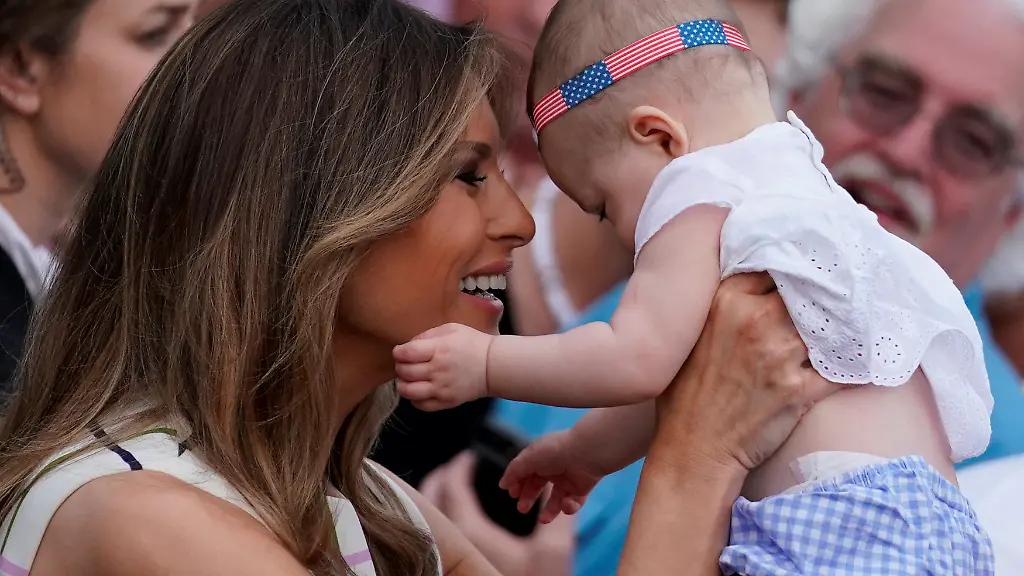 Und auch die sonst so eiserne First Lady Melania zeigte sich von ihrer fröhlichen Seite. Mit strahlendem Lächeln schmuste sie sogar mit einem Baby. Auch ihr Kleid passte zum sommerlichen Anlass. Der knielange Entwurf der griechischen Designerin Mary Katrantzou war aus hellem Stoff mit buntem Karomuster - kostet aber auch stolze 2.255 US-Dollar.