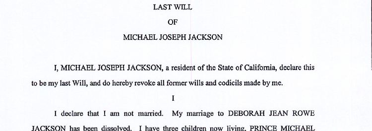 "Ich, Michael Joseph Jackson, ein Bürger der Staates Kalifornien, erkläre dies zu meinem letzten Willen und widerrufe hiermit alle früheren Vermächtnisse und Anhänge, die ich gemacht habe."