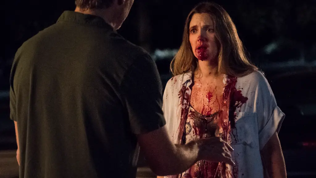Drew Barrymore: Mir gefällt das. Wir verletzen ja niemanden, also kann ich mich richtig reinhängen. Mir macht es Spaß, Leute anzuspringen, Körperteile zu essen, voller Kotze und Blut zu sein oder Haarknäule auszuspucken.