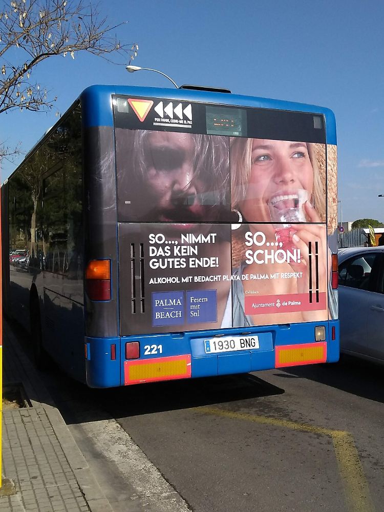 Die Initiative geht vom Verband "Palma Beach" aus, der sich seit vier Jahren für eine Verbesserung der Qualität des Angebots an dem berühmt-berüchtigten Strand einsetzt. Unter anderem prangen ab sofort Werbeplakate an Bushaltestellen und auf Stadtbussen, die Touristen zu umsichtigem Alkoholkonsum aufrufen.