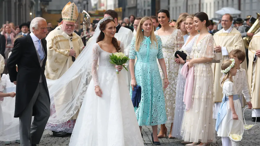 Zu der Wittelsbacher-Hochzeit waren rund 1000 Gäste gekommen, neben vielen Verwandten auch Vertreter bekannter Familien wie Esterhazy, Habsburg, Sachsen-Coburg, Fugger oder Liechtenstein. Auch Politiker wie Bayerns Ministerpräsident Markus Söder waren da. Nach der Trauung lädt Franz Herzog von Bayern, Chef des Hauses Wittelsbach, zu einem Empfang im Schloss Nymphenburg ein.