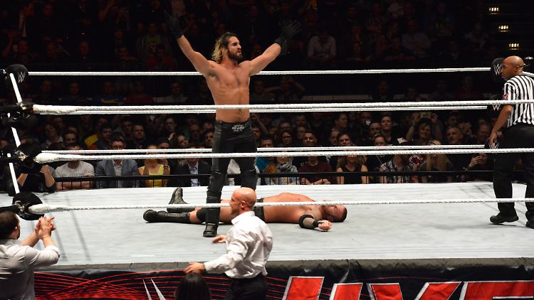 Im Ring geht der Abend mittlerweile seinem Höhepunkt entgegen. Die Moves werden immer spektakulärer, als Seth Rollins, der "Bad Guy", und Randy Orton um den WWE-World-Heavyweight-Champion-Gürtel kämpfen. Das Publikum hält es kaum mehr auf den Plätzen, als die hinterhältigen Manager von Rollins plötzlich auf Orton einprügeln. Flog da etwa gerade ein Zahn? Oder war es nur Spucke? Egal, der Unparteiische greift ein - Rollins ist disqualifiziert. Orton rafft sich noch ein letztes Mal auf und prügelt kurzerhand alle drei aus dem Ring. Ende gut, alles gut.