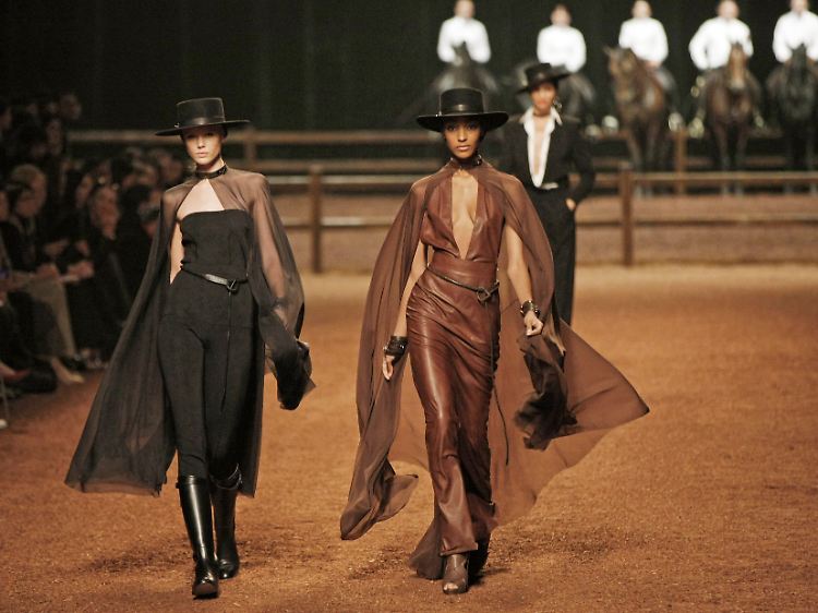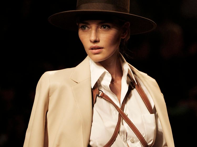 Hüte, Fransenjacken, Gürtel in Form von Reitpeitschen und kunstvolles, fast durchsichtiges Leder komplettierten das Defilee, bei dem neben Schwarz und Creme warme Brauntöne wie Sand, Nougat oder Karamell dominierten. Die Taille war betont, der Rücken wurde durch geschickte Öffnungen in den Entwürfen häufig freigelegt. Gaultiers Nachfolger, Christophe Lemaire, wird in der kommenden Saison das Ruder übernehmen, während der immer noch jungenhaft wirkende "Altmeister" sich auf seine eigene Marke konzentriert.
