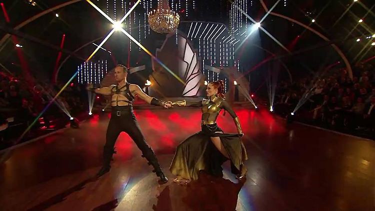 Die kleine Verschnaufpause scheint den Promis gut getan zu haben. Die rotmähnige Barbara sieht aus wie eine in Gold gegossene Göttin und tanzt den Paso Doble mit einer Mimik, die sämtliche Nöler erzittern lässt. Auch Jimi Blue hat jede Menge "Intensität in seiner Bewegung".