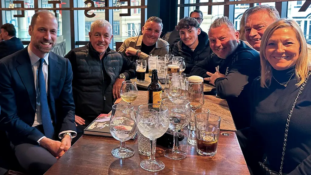 Und so nutzte Prinz William den Besuch in Birmingham dann auch gleich noch für eine gesellige Runde unter gleich gesinnten Fußballfans: Der 42-Jährige überraschte Anhänger seines Herzensvereins Aston Villa in einem Pub. Rund 30 Minuten plauderte er mit den acht Dauerkartenbesitzern über König Fußball und gab ihnen offenbar auch eine Runde Bier aus. "Er ist kein Schönwetter-Fan. Er liebt den Verein wirklich mit Leidenschaft", zitieren die britischen Medien einen der Anwesenden.