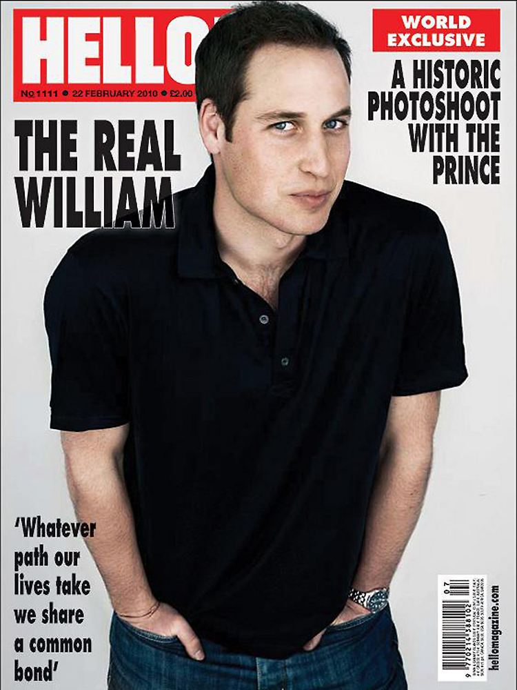 Mit Ansatz zur Glatze - so wurde Prinz William zuletzt oft abgelichtet. Doch nun ist der Enkel der Queen für ein Foto verschönert worden. Auf dem Titelbild des Magazins "Hello!" strahlt der 27-Jährige auf einmal mit vollen, dunklen Haaren. Eigentlich hat der Prinz dunkelblondes Haar, und auf seiner offiziellen Reise nach Neuseeland und Australien im Januar wurde über sein schütteres Haar gespottet.