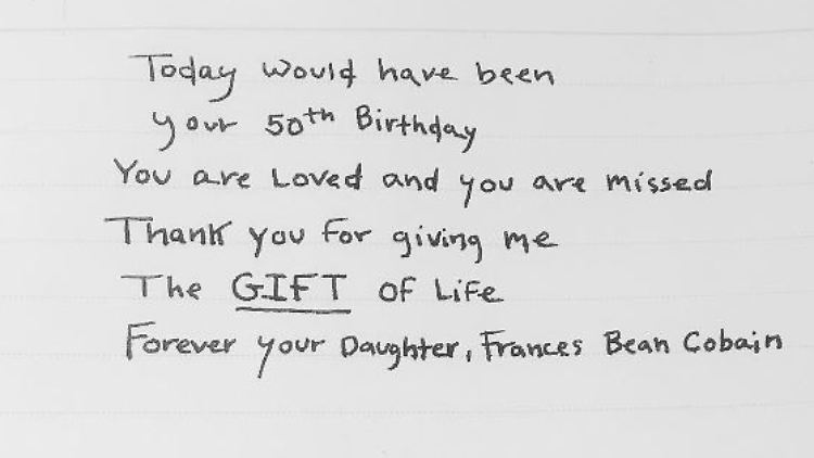 Diese handschriftlichen Zeilen veröffentlichte das US-Model auf ihrem Instagram-Account. Dort melden sich Fans ihres Vaters zu Wort: "Wir vermissen dich noch immer Kurt, happy birthday!" und: "Du hast den Soundtrack zu meiner Jugend geliefert, wir lieben dich so sehr!"