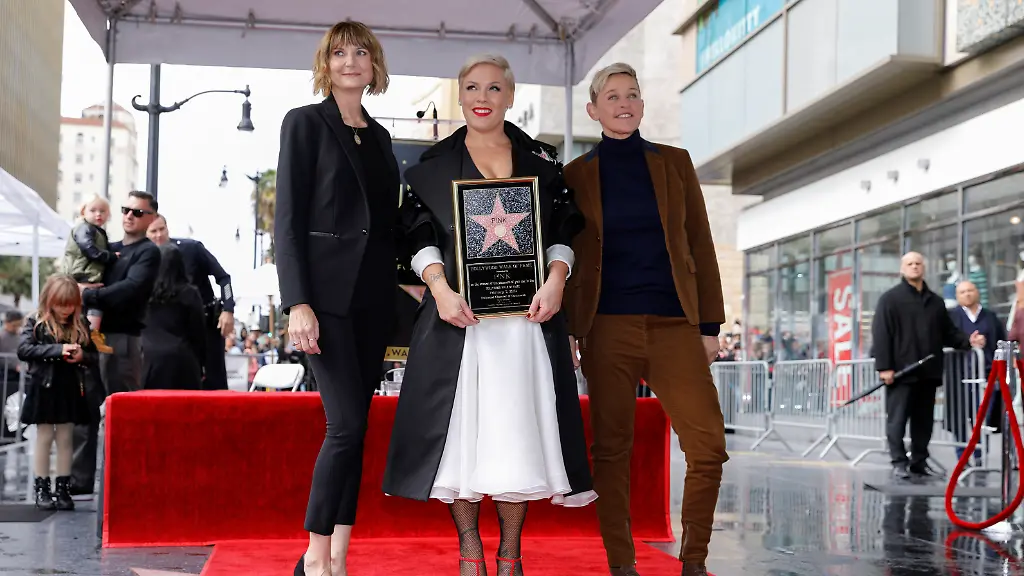 Familienbild auf dem "Walk of Fame": Ganz als Familienmensch nimmt Sängerin Pink ihren goldenen Stern auf dem berühmtesten Trottoir der Welt entgegen. Sie verzückt damit nicht nur ihre Fans, sondern auch ihre Laudatorin.