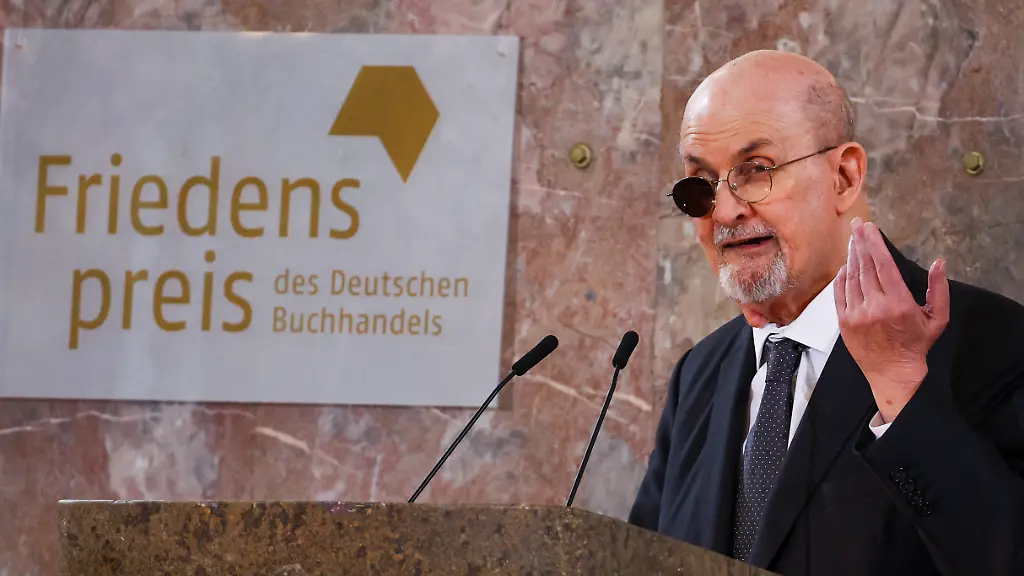 Die Vorsteherin des Börsenvereins des deutschen Buchhandels, Karin Schmidt-Friderichs, nannte Rushdie in der Paulskirche "einen Menschen, von dem wir lernen können, was Mut ist". Berühmt wurde Rushdie mit seinem 1981 erschienenen Meisterwerk "Mitternachtskinder". 1989 rief der damalige iranische Revolutionsführer Ayatollah Chomeini wegen des Romans "Die satanischen Verse" zur Ermordung des Autors auf. Mehr als zehn Jahre lang lebte er unter ständiger Bewachung versteckt an wechselnden Orten. Eine Messerattacke in den USA 2022 überlebte Rushdie nur knapp, er ist seither auf einem Auge blind. "Hier sind wir nun versammelt, um über Frieden zu sprechen, wo doch gar nicht weit fort ein Krieg tobt", sagte Rushdie. Der Krieg Russlands gegen die Ukraine sei "der Tyrannei eines einzelnen Mannes und seiner Gier nach Macht und Eroberung geschuldet". In Israel und dem Gazastreifen sei "noch ein bitterer Konflikt explodiert". Frieden erscheine ihm im Moment "wie ein dem Rauch der Opiumpfeife entsprungenes Hirngespinst".