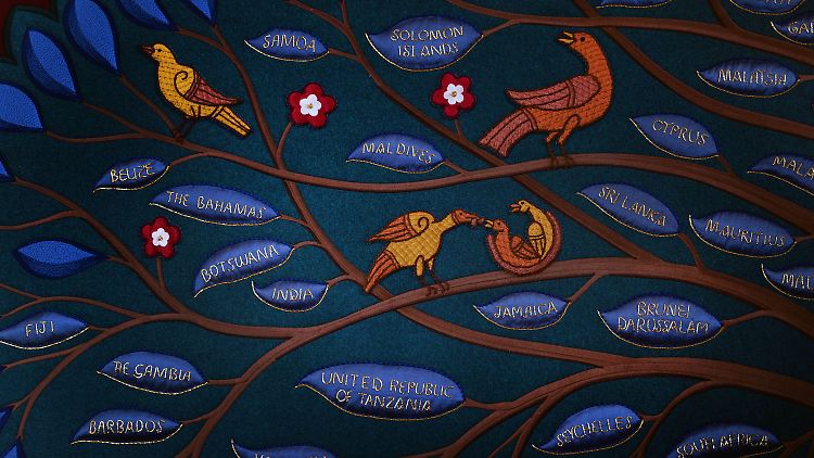 Jedes Detail hat eine Bedeutung: so sind auf dem Schirm die Commonwealth-Länder vertreten.