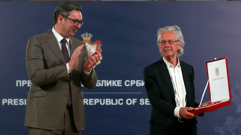 Es war nicht der erste Preis, den Handke in den vergangenen Tagen erhielt: In Banja Luka, der Hauptstadt der Republika Srpska (RS), einem serbisch geprägten Teil Bosnien-Herzegowinas, nahm er bereits am Freitag den Orden der Republika Srpska entgegen, den ihm die RS-Präsidentin Zeljka Cvijanovic überreichte. In der ostbosnischen Stadt Visegrad, die ebenfalls in der RS liegt, ehrte ihn der Filmregisseur Emir Kusturica am selben Tag mit dem Großen Ivo-Andric-Preis.