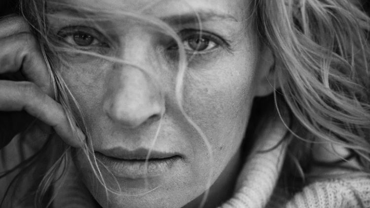 Uma Thurman, fotografiert von Peter Lindbergh für den Pirelli-Kalender 2017.