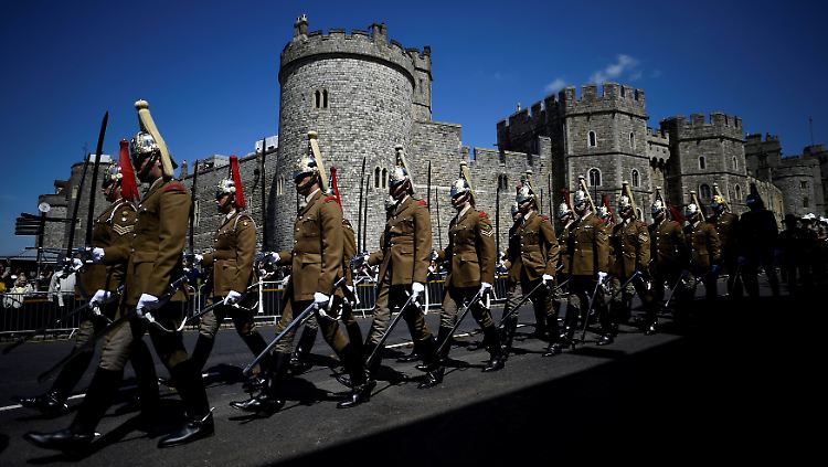 Die etwa 600 Hochzeitsgäste werden mit Bussen bis zum runden Turm von Schloss Windsor gebracht und gehen zu Fuß bis zum Südeingang der St. George's Chapel - der geschichtsträchtigen Kirche, in der die Trauung stattfindet.