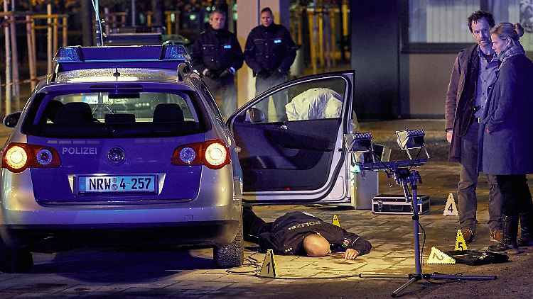 Der kaltblütige Mord an zwei Kollegen ruft mitten in der Nacht die Kommissare Faber (r.) und Bönisch auf den Plan.
