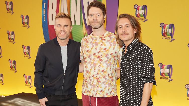 Hauen und Stechen im Berliner Stage Theater des Westens. Fotografen klettern auf Stühle und Tritthocker, um Sicht auf die Bühne zu ergattern. Dann folgen Blitzlichtgewitter und Geschrei: "Nach links gucken, bitte". Auf der Bühne stehen Gary Barlow, Mark Owen und Howard Donald von Take That, und die Hysterie fühlt sich an wie einst in den Neunzigern, als die Boyband reihenweise Rekorde und mit ihrer Auflösung später Herzen brach. Der Grund für ihren Berlin-Besuch: Am 11. April feiert das Musical The Band, das Take That mitproduzierten, in dem Theater seine Deutschlandpremiere.