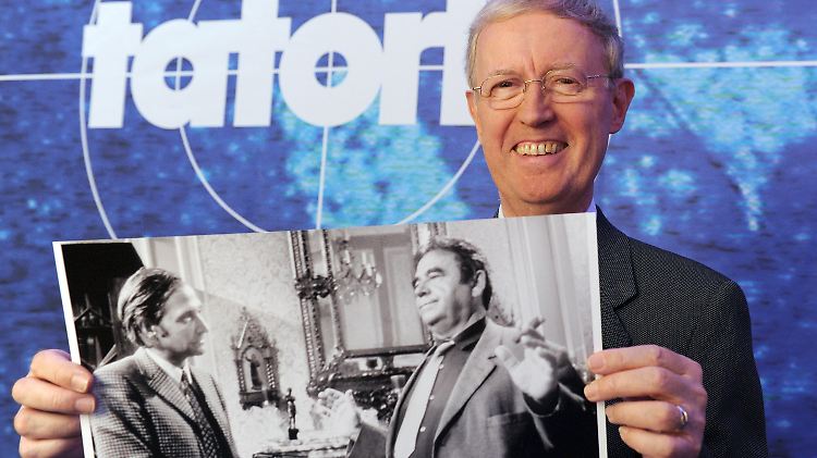 Der "Erfinder" des "Tatorts", der ehemalige Leiter der Programmgruppe Fernsehspiel WDR, Gunther Witter, mit einem Foto der ersten "Tatort"-Folge "Taxi nach Leipzig".
