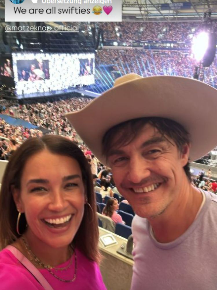 Auch mit einem Instagram-Post hielt sie die Erfahrung fest. Auf dem Schnappschuss, den sie mit "Ü40 Swifties" kommentierte, zeigte sie sich mit Ehemann Giovanni Zarrella und einem Fan-Plakat auf dem Rang der Arena. Im Hintergrund sind die Bühne und Tausende Konzertbesucher zu sehen. "Selten so etwas Gutes gesehen", erklärte Zarrella nach der Show. "Zu Recht die beste und größte Künstlerin, die es momentan gibt. Falls ihr die Möglichkeit habt, das Konzert zu sehen, verpasst es auf keinen Fall."