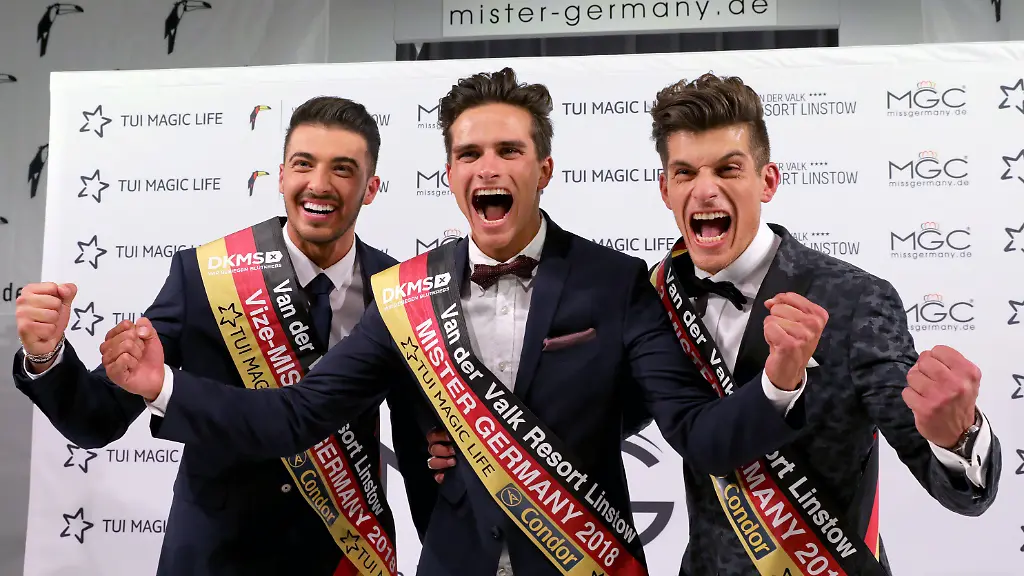 Die 16 Finalisten hatten sich in Vorausscheiden für die große Endrunde in einem Ferienresort in Linstow (Landkreis Rostock) qualifiziert. Beworben hatten sich 1025 junge Männer. Mit strahlendem Siegerlachen und geballten Fäusten posiert Unbehaun vor den Fotografen, nachdem sein Vorgänger Dominik Bruntner, der "Mister Germany 2017", ihm die Siegerschärpe unter dem Kreischen des größtenteils weiblichen Publikums umgelegt hat.