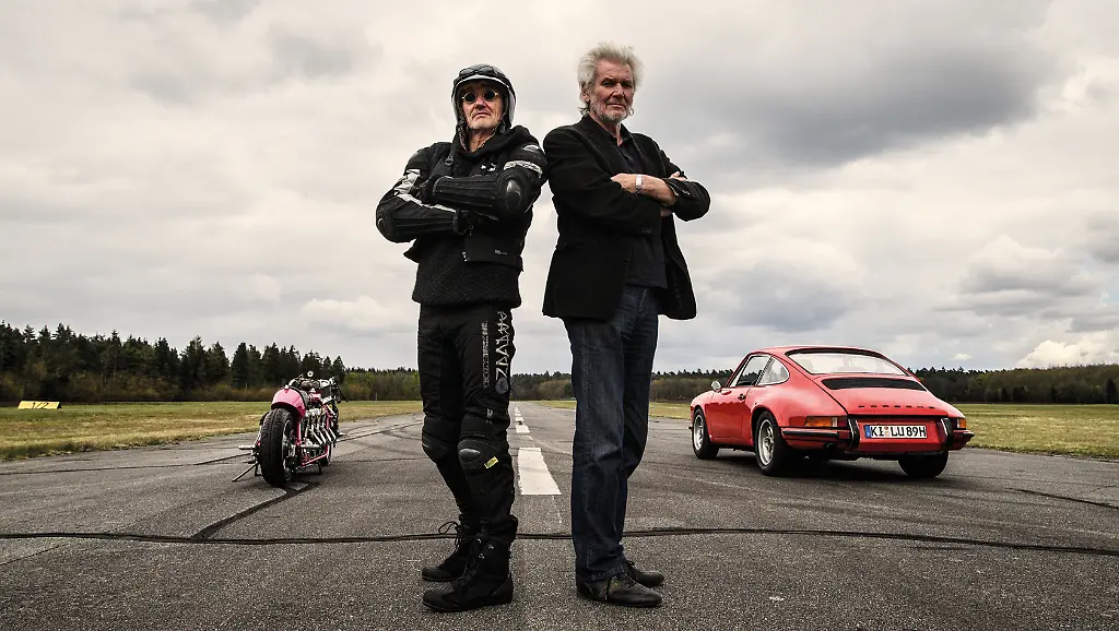 Der Höhepunkt ist allerdings das Rennen am Sonntag zwischen Feldmann und Holger Henze. Es ist nicht irgendein Duell, sondern ein Wettstreit zwischen Henzes getunten 1968er Porsche 911 und dem "Red Porsche Killer", einem speziell angefertigtem Motorrad mit vier Horex-Motoren, an dessen Lenkrad Feldmann Platz nimmt.