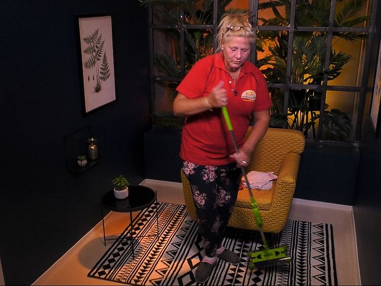Sowieso hängen auf der Baustelle alle ziemlich durch. Der eine stiert vor sich hin, der andere guckt desillusioniert ins Lagerfeuer. Da läuft es in der Villa um einiges runder. Mutti Wollny fühlt sich, als sei "Weihnachten", denn - tada! - sie hat neues Putzzeug erhalten. Feuchttücher und Wischlappen, sogar einen Staubsauger, denn "gucke mal, hier ist alles voller Krümel!"