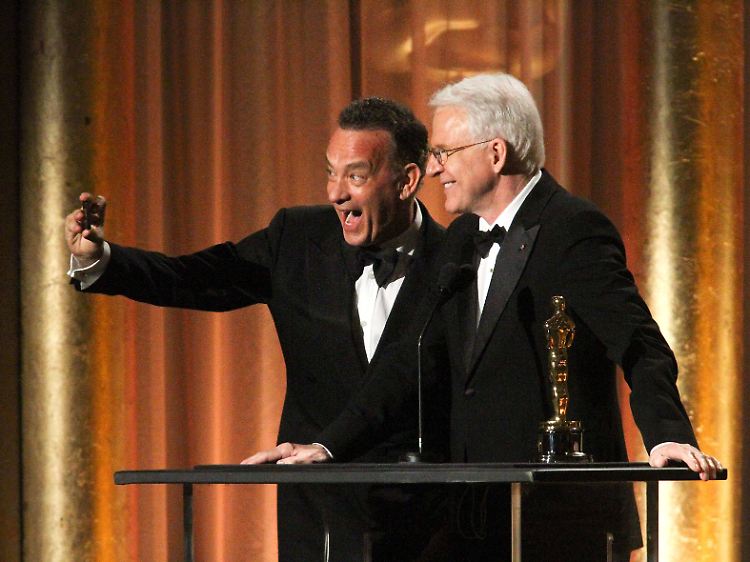 Der verdiente Ehren-Oscar wurde Martin von Tom Hanks überreicht. Ein bisschen Zeit für ein Selfie muss sein.