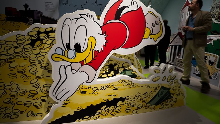 Gewinner ist trotzdem Dagobert Duck. "Für mich ist es keine Kunst, Geld zu machen", sagt er selbst. Niemand ist reicher als der Fantastilliardär. Das findet auch "Forbes": In der aktuellen Liste der reichsten fiktiven Figuren belegt er den ersten Platz, nachdem ihn zwischenzeitlich Dauerrivale Mac Moneysac überholt hatte. Bleibt die Frage, wofür Dagobert das Geld ausgibt. Die Antwort: gar nicht. Er investiert nicht, er hortet das Geld in seinem Geldspeicher, gut beschützt vor Panzerknackern und Gundel Gaukeley. Wirtschaftlich sinnvoll ist das nicht, die Inflation lässt das Vermögen schrumpfen. Ein Finanzkapitalist ist Dagobert also keineswegs. Anders als Trump hat er aber auch keine Schulden, braucht keine Kredite. Und Sparsamkeit ist oberstes Gebot. Protzen ist nicht Dagoberts Sache - noch immer trägt er seinen alten Gehrock und den immergleichen Zylinder.