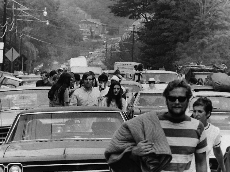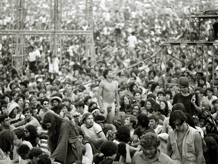 Dann: das Wetter. Dauerregen verwandelt alles in Schlamm, Sturm bringt Boxentürme und andere Aufbauten zum Schwanken, die Bühne steht unter Wasser, die Musiker bekommen Stromstöße ... die Musiker, die überhaupt angekommen sind. Denn schon Tage vor Beginn des Festivals hatte sich eine gigantische Lawine in Bewegung gesetzt, Hunderttausende Menschen aus allen Landesteilen strömten zum kleinen Ort Bethel im Bundesstaat New York, verstopften die Straßen, nichts ging mehr - irgendwann nur noch zu Fuß oder per Flug.