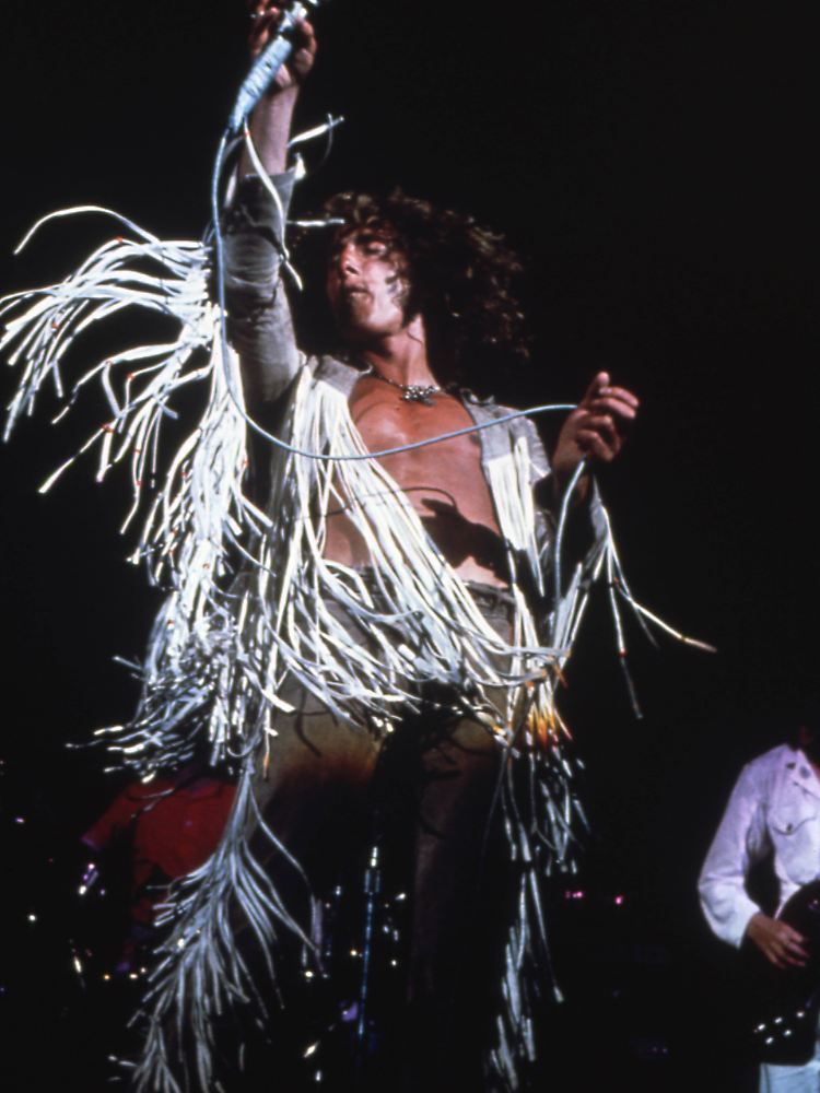 Roger Daltrey mit The Who - die Band spielte zweieinhalb Stunden grandios, aber Gitarrist Pete Townshend trat einen Kameramann und haute Politaktivist Abbie Hoffman die Gitarre über den Kopf, weil er ihren Auftritt mit einer Ansprache störte.