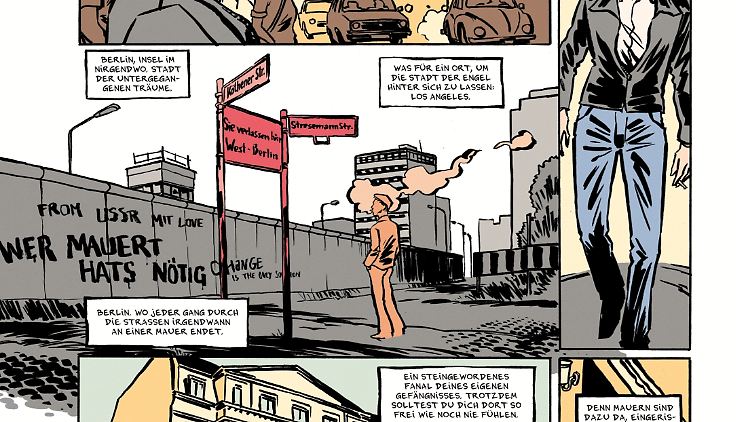 Erst zum Ende des Bandes spielt Kleist verstärkt mit grafischen Mitteln. Etwa wenn er Melodien als Bänder darstellt, die sich durch den Raum winden, aneinanderschmiegen und immer wieder neue Richtungen einschlagen - hier spürt man die experimentelle Rockmusik, die Alben wie "Low" und "Heroes" prägt. Gegen Ende schließlich wird auch der Vorhang der Realität durchbrochen. In einer traumhaften Sequenz bebildert Kleist die Darbietung von "Heroes", dem Welthit aus Berlin.