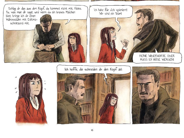 Ziemlich schnell erwachsen werden muss dagegen Lyra. Sie ist die Heldin in Philip Pullmans Fantasy-Klassiker "His Dark Materials", der als "Der Goldene Kompass" von Stéphane Melchior (Szenario) und Clément Oubrerie (Zeichnungen) als Comic adaptiert wird. Lyra lebt in Oxford - einer Universitätsstadt, die zwar an das reale Vorbild erinnert, sich aber in einer magischen Welt befindet. So wird Lyra stets von ihrem Dæmon begleitet, einem Tier, das die Manifestation ihres Charakters ist. Während ihr Onkel Asriel im Norden die mysteriöse Materie "Staub" untersucht, kommt Lyra der Entführung unzähliger Kinder auf die Spur. Mit der zwielichtigen Mrs. Coulter reist sie nach Norden, wo die Kinder vermutet werden. Auf dem Weg dorthin begegnet sie vielen Gefahren, aber auch Verbündeten wie den umherziehenden Gyptern.