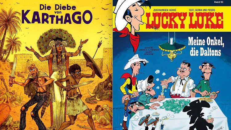 Links: "Die Diebe von Karthago", Avant, 112 Seiten im gebundenen Großformat, 24,95 Euro. Rechts: "Lucky Luke Band 93: Meine Onkel, die Daltons", Ehapa, 48 Seiten, Gebunden 12 Euro, Softcover 6,50 Euro.