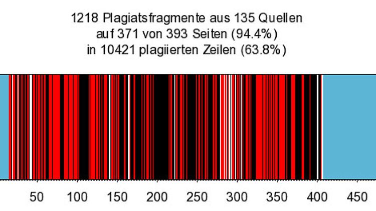 Das kann man nur mit einem gewissen Kopfschütteln lesen. In der Logik Guttenbergs ist damit aber die Grundlage für den Beweis gelegt, dass er gar nicht betrogen haben kann. Denn wenn man nicht mehr weiß, dass ein Text geistig jemand anderem gehört, dann ist das nicht mehr geklaut, sondern nur im "großen Text- und Gedankensteinbruch" verschüttet worden. Außerdem ist es in "juristischen Dissertationen (…) durchaus üblich, mit vielen Fremdtexten zu arbeiten, allerdings müssen die Quellen klar gekennzeichnet sein". Das unterblieb zwar, aber auch das taugt aus Guttenbergs Sicht noch längst nicht als Beleg dafür, dass er mit "Täuschungsabsicht" gehandelt hat. Daran ändert auch das Ergebnis von GuttenPlag Wiki nichts, die inzwischen 1218 Plagiatsfragmente aus 135 Quellen auf 371 von 393 Seiten feststellt.