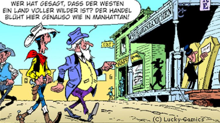Das bewährte Konzept der alten "Lucky Luke"-Bände, historische Persönlichkeiten und Begebenheiten in die Handlung einzubauen, wurde erfreulicherweise beibehalten. Nur gehen Achd und Gerra forscher ans Werk als Morris und sparen auch nicht die Zeitgeschichte aus - vor allem mit Anspielungen auf den gerade erst überstandenen Wahlkampf in den USA wird nicht gegeizt.