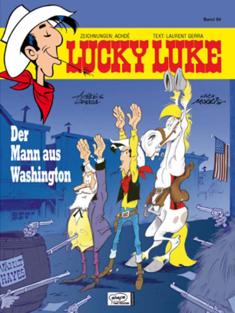 "Lucky Luke", Band 84: "Der Mann aus Washington" von Achd und Laurent Gerra, Egmont Ehapa Verlag Berlin 2009, Hardcover 48 Seiten 10,- (D), ISBN 978-3-7704-3283-7. Im Zeitschriftenhandel auch als Softcover erhältlich: 46 Seiten 5,50 (D).