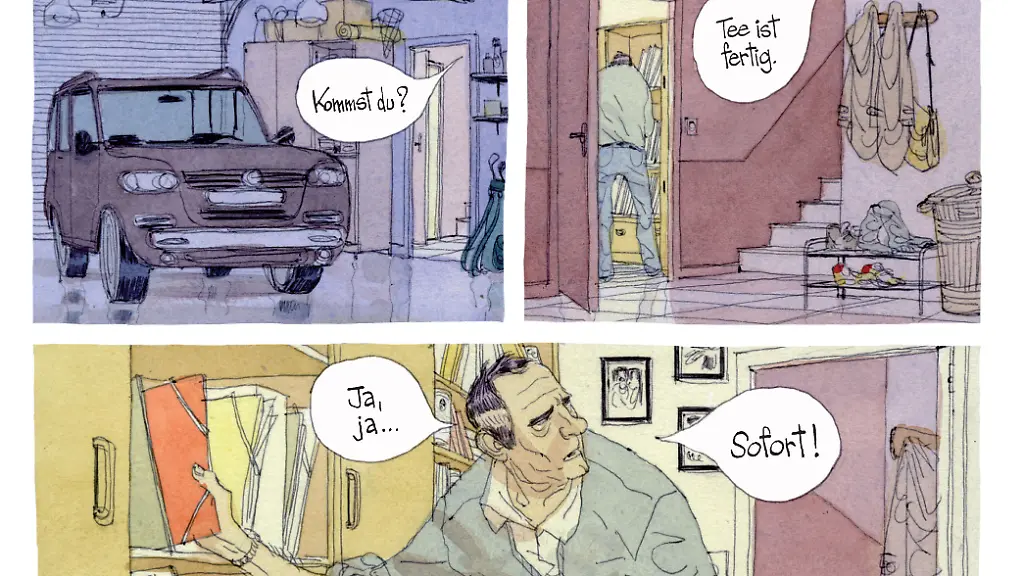 Es ist aber auch der Comicteil, der die mal direkten, mal indirekten Zusammenhänge zwischen den Figuren und verschiedenen Handlungssträngen herstellt. Pedrosa verzichtet hier auf Überraschungseffekte, er setzt eher auf Anspielungen. Etwa wenn der Bau jenes Flughafens, der Louis umtreibt, auch in einer Szene mit Vincent zur Sprache kommt. Oder wenn Louis ein altes Gemälde kauft, das ihn an den Tiefpunkt in seinem Leben erinnert.