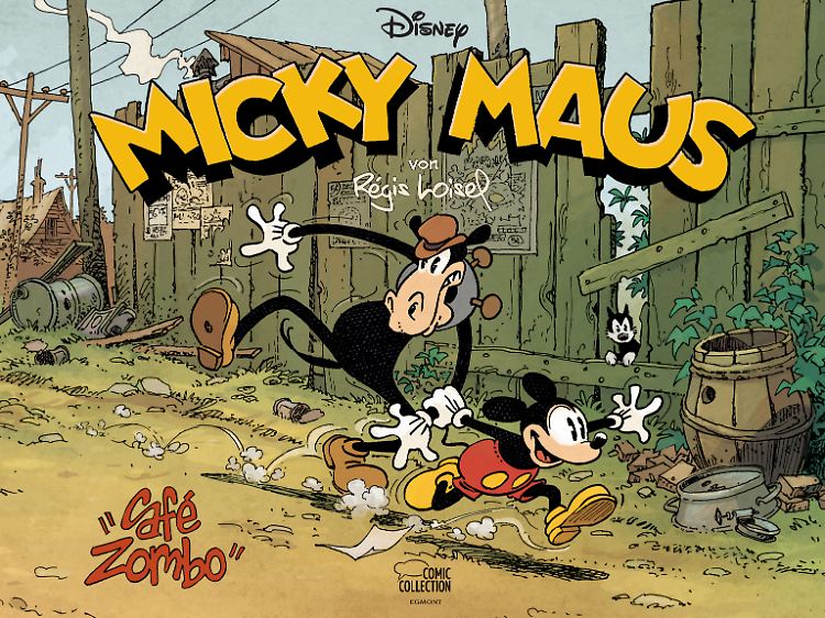 Wobei wir vorerst beim Klassiker bleiben: Disney. Eigentlich ist der Konzern nicht für Experimente bekannt, wenn es um seine größten Helden geht. In Zusammenarbeit mit einigen renommierten europäischen Zeichnern ist nun aber eine ganze Reihe höchst liebevoller und edel aufgemachter Hommage-Bände erschienen. "Café Zombo" von Régis Loisel ist nur der neueste Band, aber auch der vorläufige Höhepunkt der Serie.