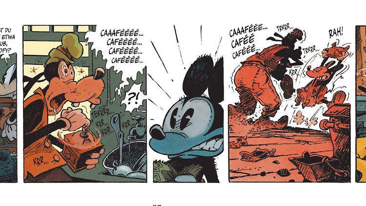 Loisel erzählt diese Geschichte mit Humor und Slapstick, einem ordentlichen Schuss Spannung - und für Disney eigentlich ungewohnter Sozialkritik an Spekulanten und Ausbeutung. Allerdings gibt es auch jede Menge Nostalgie. "Café Zombo" verneigt sich vor den klassischen Abenteuern, deren Einfluss man vor allem in den wunderschönen, detailreichen Zeichnungen sieht - und an Micky mit seinen roten Knopfhosen und großen Augen. Aber auch erzählerisch atmet der Held hier noch jene Anarchie, die er in neueren Inkarnationen abgelegt hat, es ist geradezu eine Wiederauferstehung der ursprünglichen Maus. Das Buch richtet sich deshalb wohl vor allem an Nostalgiker, die noch einmal in einer klassischen Comic-Epoche schwelgen wollen. Wer mit Loisel fertig ist, kann dann gleich bei Coseys Hommage "Eine geheimnisvolle Melodie" weiterlesen, die zeitlich ähnlich gelagert ist, auch wenn sie nicht ganz die zauberhafte Überdrehtheit von Loisels Band erreicht.