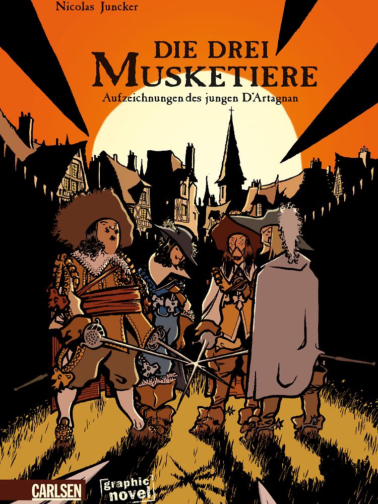 Nicolas Juncker: "Die drei Musketiere" ist bei Carlsen erschienen, hat 264 Seiten, ist farbig und gebunden und kostet 24,90 Euro (D).