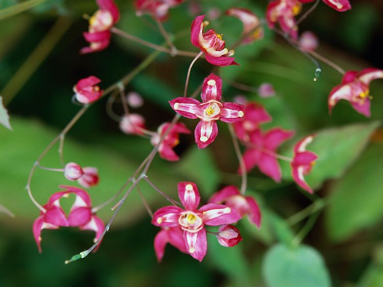 Die Elfen- oder Sockenblume, botanisch Epimedium, wird im Englischen Feenflügel oder Kraut der geilen Ziege genannt.
