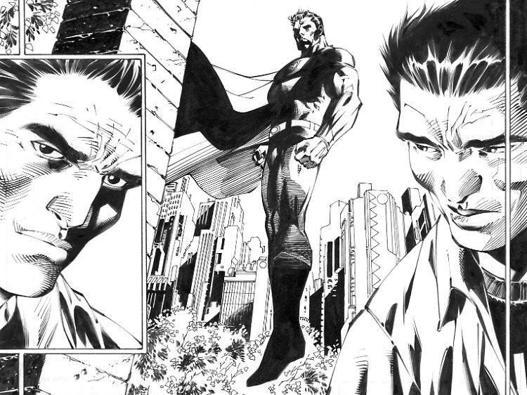 Die Superman-Ausstellung wartet mit etlichen Originalzeichnungen auf - hier von Jim Lee.