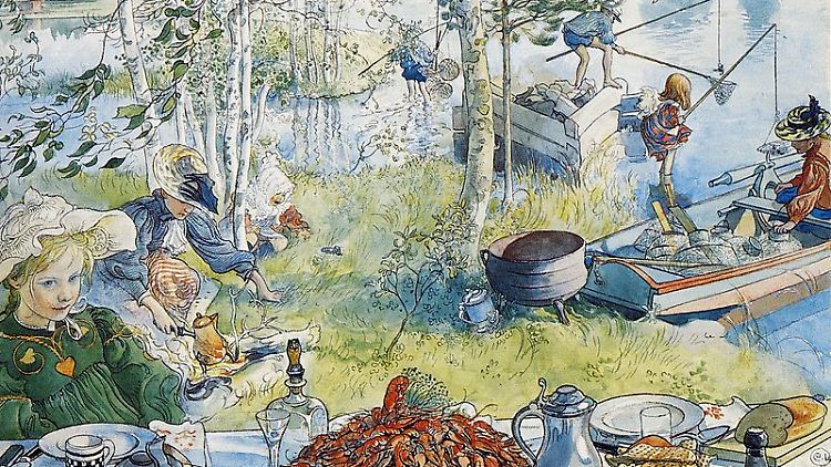 Der schwedische Künstler Carl Larsson (1853-1919) malte 1897 das Bild "Der Krebsfang".
