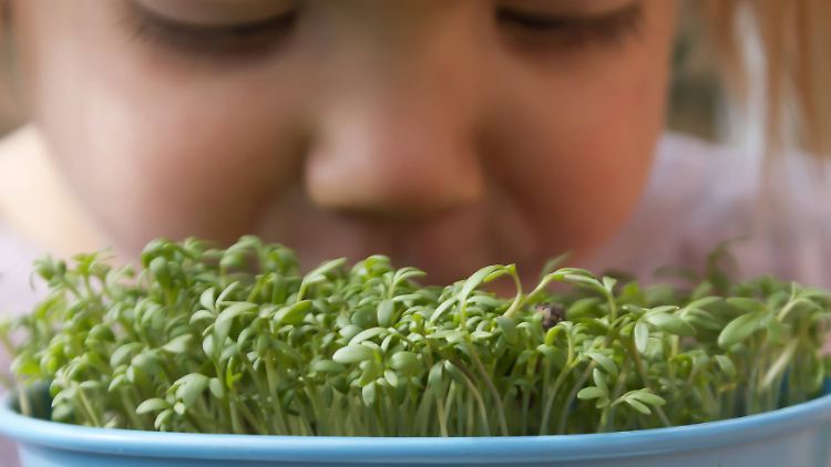 Bleiben wir lieber bei der Gartenkresse, zumal die keiner Saison unterliegt, sondern ein echtes Ganzjahreskraut ist. Die einjährige Pflanze hat vermutlich die kürzeste Wachstumszeit aller Gewürzpflanzen. Die Pflänzchen keimen so schnell, dass sie innerhalb einer Woche für den Verzehr geeignet sind. Da die Kresse auf fast jeder feuchten Oberfläche wächst, ist es total simpel, sie selbst anzubauen: Einen Esslöffel Kresse-Samen auf feuchte Watte streuen, diese Unterlage immer feucht halten und nach etwa sieben Tagen erleben Sie Ihr grünes Wunder. Die Samen dürfen aber nicht schwimmen, denn zum Keimen brauchen sie außer Wasser in der Watte auch Luft. Die Keime werden dann am besten mit einer Schere nicht zu tief abgeschnitten; eventuell anhängende Samenhülsen einfach abstreifen. Gartenkresse ist so anspruchslos, dass heruntergefallene Samen selbst auf Ihrem Teppich keimen; Sie müssten das gute Stück nur ein wenig feucht halten...