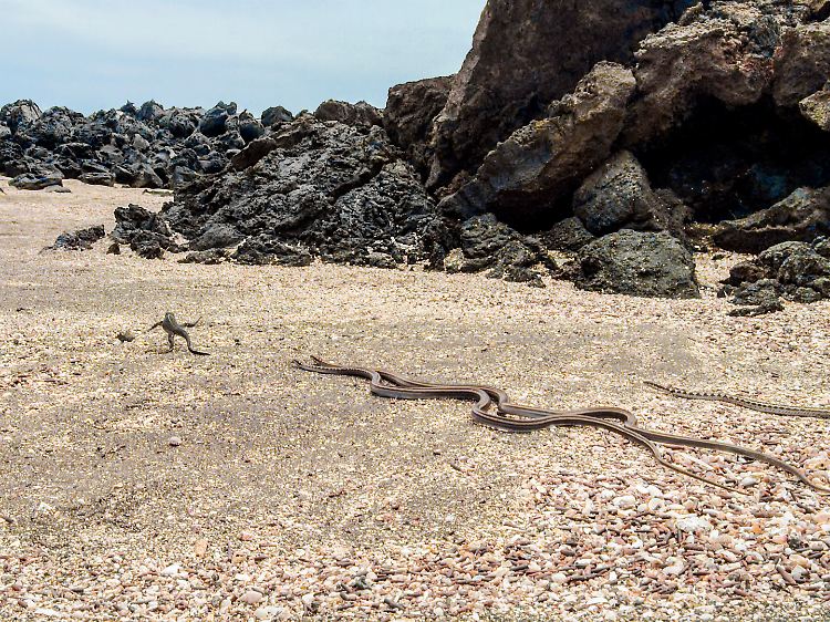 Natürlich kommt "Unsere Erde 2" nicht umhin, sich klassischer Elemente des Tierfilms zu bedienen. Schließlich schreibt die Natur auch im Zeitalter von Smartphones und Abgasaffären noch immer die besten Drehbücher. Und so zeigt auch dieser Film die täglichen Kämpfe um Nahrung, Lebensraum und Macht. Dabei sind auch weniger bekannte Konflikte zu sehen wie zwischen Galapagos-Racern und frisch geschlüpften Meerechsen. "Die Verfolgungsjagd zwischen Nattern und Leguanen hat schon James-Bond-Faszination", sagt Jauch. Nicht minder dramatisch ist das Duell um Nektar zwischen einem Kolibri und einer Biene.