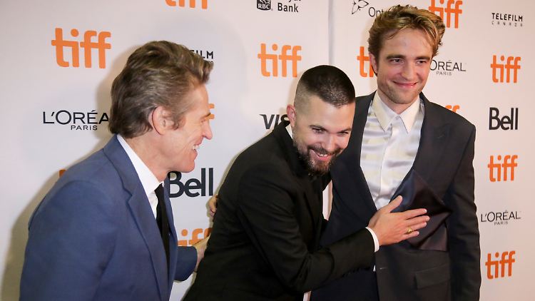 Regisseur Robert Eggers (M.) mit Dafoe und Pattinson bei der Filmpremiere in Kanada.